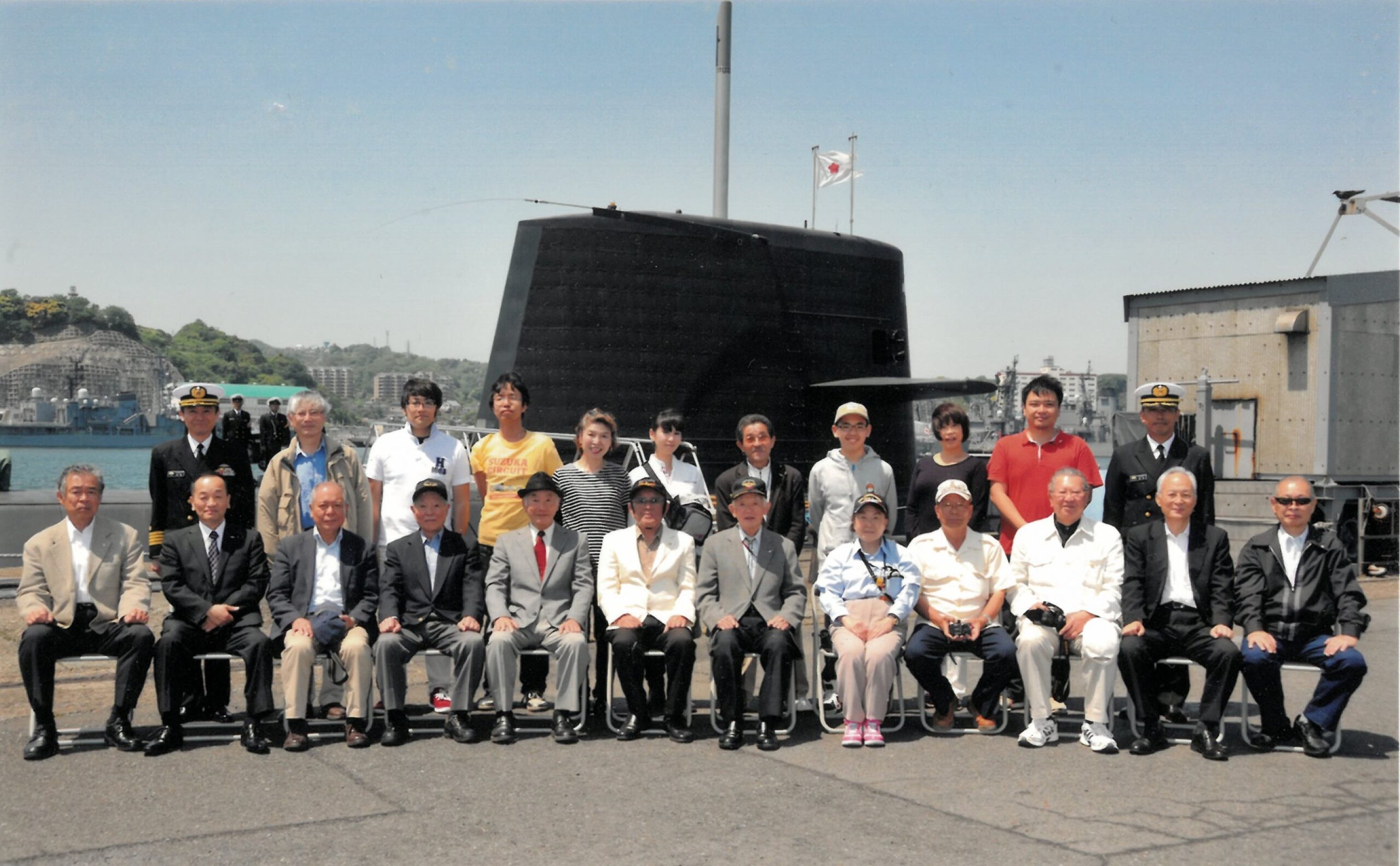 2014年5月9日2026年3月26日コメントをどうぞ (潜水艦(なるしお)研修 2014年5月9日) 横須賀地区にて なるしおの艦内研修がありました。 横須賀地方総監部とは対岸の、海上自衛隊 第2潜水隊群司令部に集合し研修を行いました。 第2潜水隊群群司令 佐藤賢上1等海佐 なるしお艦長 堤田和幸2等海佐と共に記念写真を撮りました。